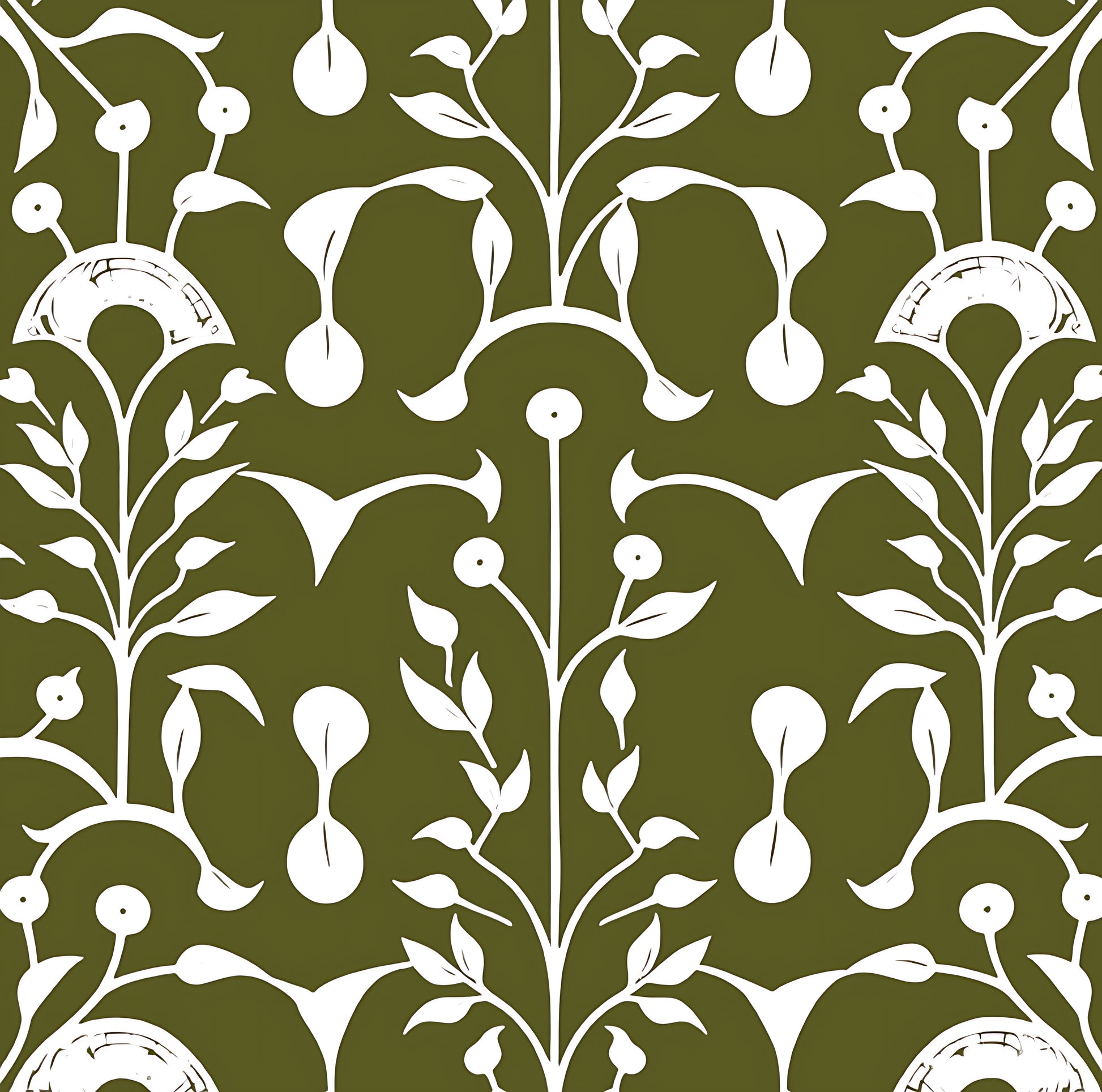 Garden Vine in Olive - Fabric by the Yard