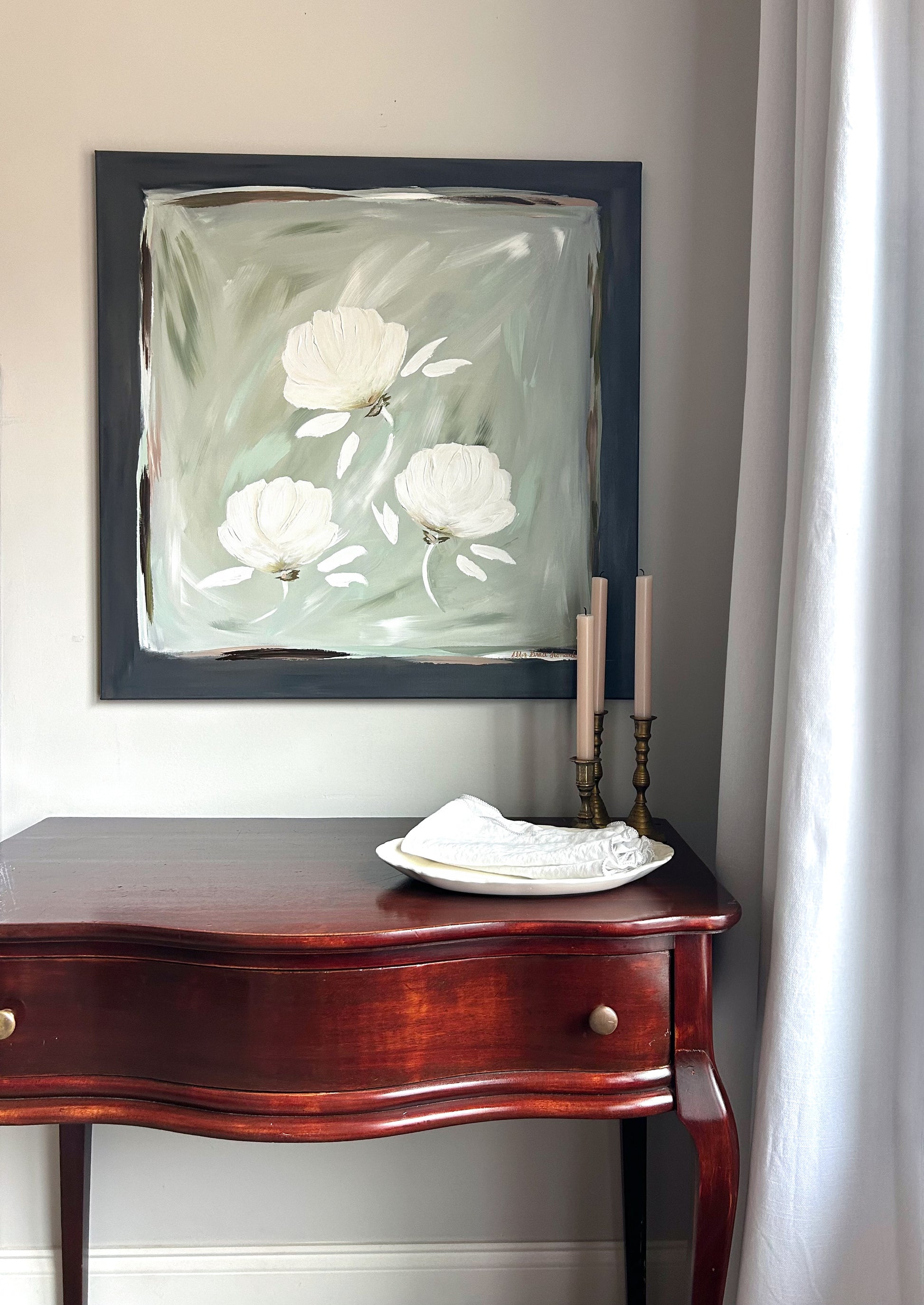 I recommend framing this painting due to the canvas’s depth. However, when it comes to displaying artwork, I want you to be able to choose how your piece is displayed. For that reason, I offer the option of having your piece framed or leaving it unframed. Some people love the classic, finished touch that a float frame adds, while others prefer a different frame style. Having the option to choose allows you to personalize the artwork to perfectly fit your style and space.