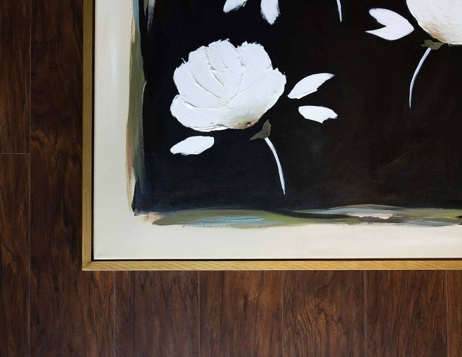 I recommend framing this painting due to the canvas’s depth. However, when it comes to displaying artwork, I want you to be able to choose how your piece is displayed. For that reason, I offer the option of having your piece framed or leaving it unframed. Some people love the classic, finished touch that a float frame adds, while others prefer a different frame style. Having the option to choose allows you to personalize the artwork to perfectly fit your style and space.