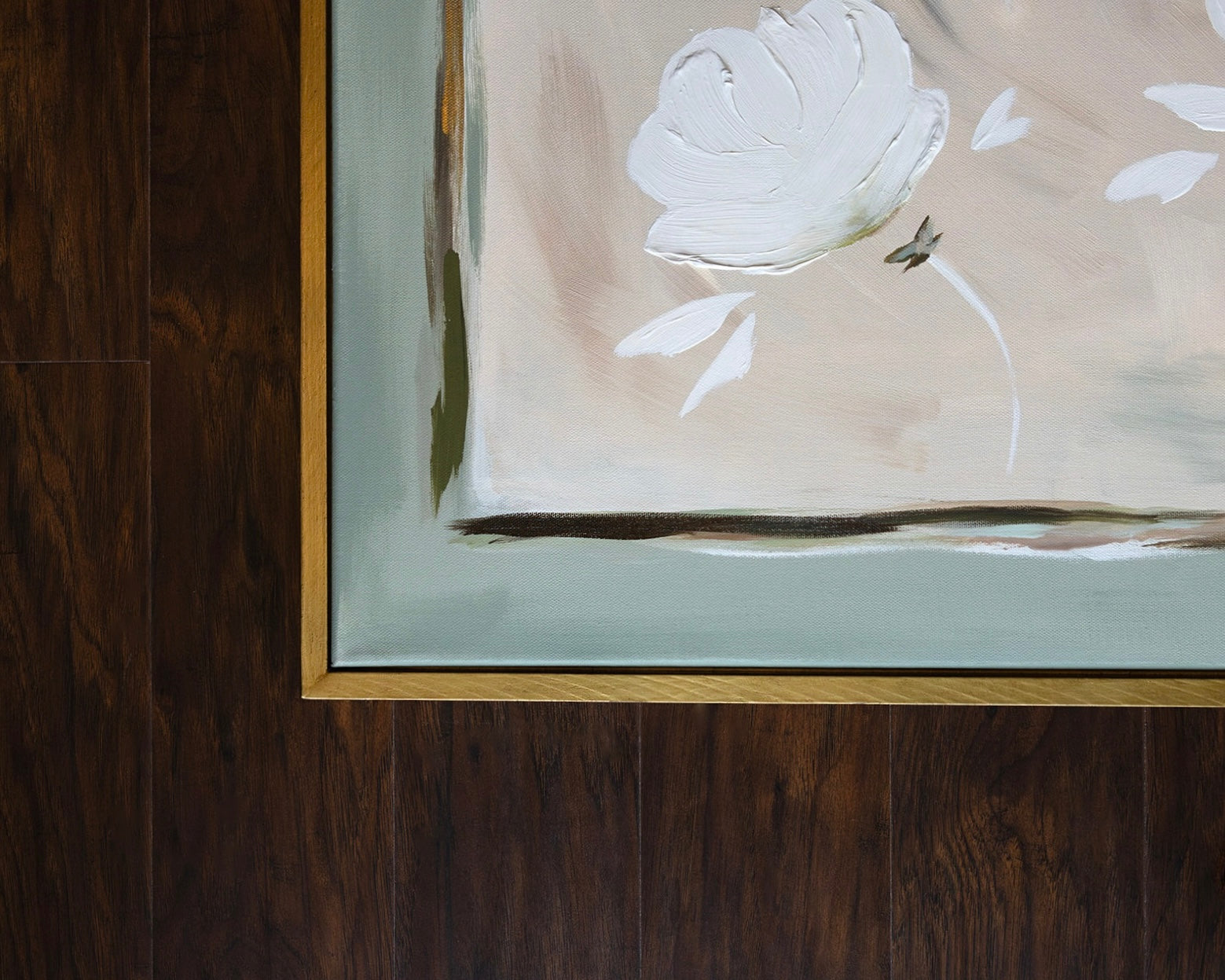 I recommend framing this painting due to the canvas’s depth. However, when it comes to displaying artwork, I want you to be able to choose how your piece is displayed. For that reason, I offer the option of having your piece framed or leaving it unframed. Some people love the classic, finished touch that a float frame adds, while others prefer a different frame style. Having the option to choose allows you to personalize the artwork to perfectly fit your style and space.